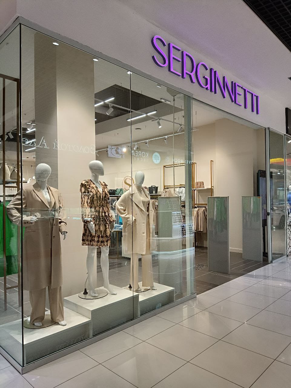Торговая точка открыта на условиях франшизы. Площадь помещения, оформленного в обновленной дизайн-концепции SERGINNETTI (натуральные, светло-бежевые оттенки) превышает 130м². Установленное в зале торговое оборудование также произведено в соответствии с дизайн-проектом бренда. Покупательская аудитория – женщины от 20 лет и старше. В магазине представлены коллекции одежды премиального класса в среднем ценовом сегменте. Премиальность одежде обеспечивают качество тканей (в основном, натуральные), изысканность и актуальность моделей, точность их посадки по фигуре.