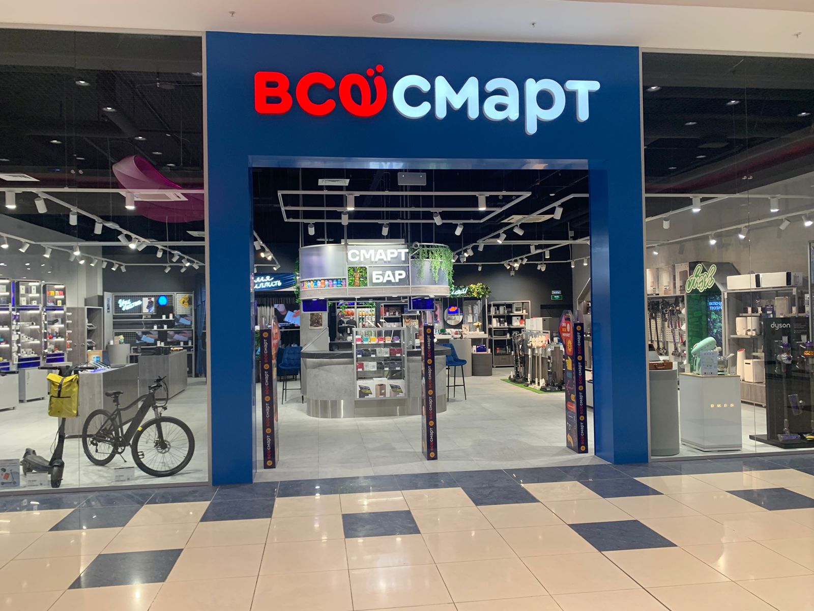 – На площади 220 м² сформировано современное концептуальное пространство с наличием интерактивных зон, в которых покупатели могут попробовать продукт любой категории: от перкуссионного массажера до пылесоса, – прокомментировала Ирина Супрунец, менеджер по маркетингу «Всёсмарт». В ассортименте аудио и компьютерная техника, техника для дома, смартфоны и гаджеты, телевизоры и аксессуары, девайсы для красоты и здоровья, товары категории «Умный дом», а также многое другое. Более 1 000 товарных позиций разных топовых брендов, в том числе Apple, Samsung, Smeg, Xiaomi и проч. Предоставляются услуги установки, настройки и сервисного обслуживания.