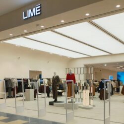 Для торговой точки разработана авторская визуальная концепция, в которой реализован тренд современного дизайна – эмоциональный минимализм. Графический черный орнамент на фоне белоснежных стен добавляет  интерьеру магазина стиль и характер. Витрины украшают коллекционные, дизайнерские фигурки бербрикс — симпатичных небольших медведей. Установленная в центре торгового зала мягкая мебель делает процесс примерки кроссовок более комфортным.